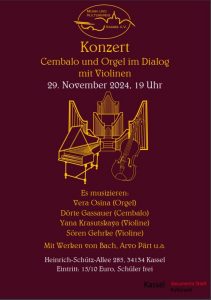 Unter dem Titel „Von Fandango bis Tango“ entführt Sie unser Kammerkonzert in die faszinierende Welt der spanischen und lateinamerikanischen Musiktradition. In feinsinnigen Arrangements und virtuos dargeboten, erleben Sie die Vielfalt und emotionale Tiefe dieser musikalischen Kulturen. Begleiten Sie uns auf eine Reise, die von der Eleganz der spanischen Klassik bis zu den feurigen Klängen Lateinamerikas …